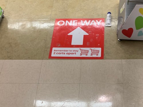 These measures are designed to avoid the crowding that takes places as two shopping carts pass in different directions. It obviously doesn’t eliminate crowding entirely, because people still often need to pass as other people stop and browse the shelves. But it’s still an improvement.