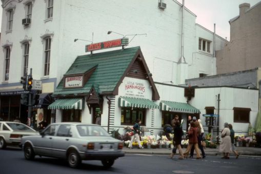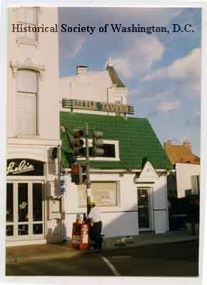 The photo, from 1992 (and the DC Historical Society) is of the northeast corner of N and Wisconsin. It shows the building much as it looked when it was a Little Tavern burger shop.