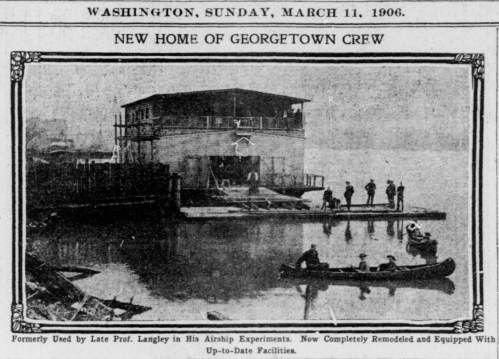 The Wright Brothers successfully made their first manned flights nine days after Langley’s last attempt from the houseboat on December 8, 1903. Georgetown acquired it sometime thereafter and converted it to rowing use.