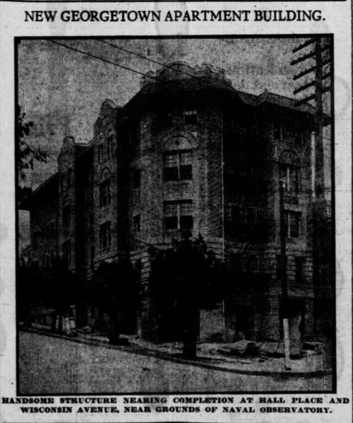 If you read the caption, you’ll see it’s a building at the corner of Wisconsin and Hall Place. It’s still there; it’s where the Starbucks was until recently. But what it certainly is not is in Georgetown, as the top of the photo suggests.