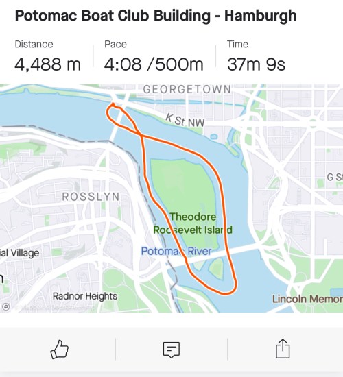 If you like to track your exercise regime with the popular app Strava, you may have noticed from time to time that it gives your workouts some odd suggested names. For example, above is from a row that GM did a few months ago. (For those who don’t use the app, it basically uses sensors in your phone or other devices to track your workout, including where you went, how fast, etc. When you save each workout, it suggests a name for the workout, which is where the workout took place.) It suggested that GM’s row workout be called “Potomac Boat Club Building – Hamburgh”.