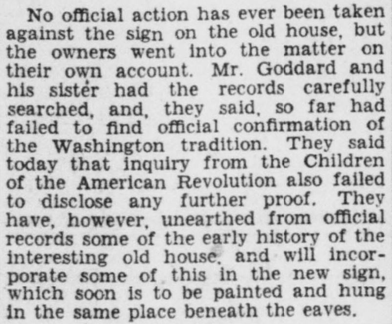 The building, obviously, is the Old Stone House, which appears now pretty much exactly as it appeared in this article, dated July 5, 1932. The reason for the article was that the owners of the building decided to take down a plaque from the building claiming that it had served as George Washington’s headquarters while the city was being surveyed: