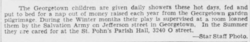 Thus, this is a snapshot of a time when Georgetown children were the subject of charitable efforts. (It should be noted that the only kids in the photo are white.) It shouldn’t be surprising to hear that there were poor Georgetown children at the time. The socioeconomic and racial demographics of the neighborhood were nothing like they are today. And moreover, it was the Great Depression!