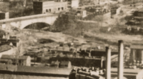 The photo is of the L St. bridge that once spanned Rock Creek. When it’s from, however, is a bit of a question. The archive’s records indicate that the photo comes from a collection of photos taken between 1923 and 1928. However, this is not what Rock Creek looked like in the mid 20s. Here’s an aerial shot showing how industrial the area around where L St. intersects with Rock Creek looked like: