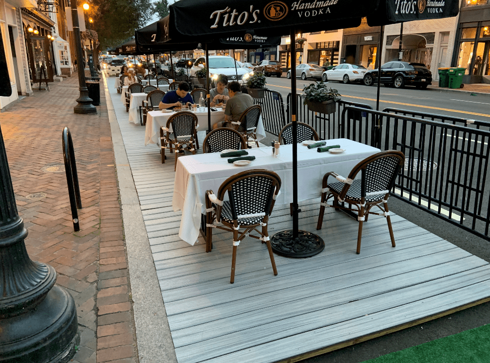 The sidewalk expansions will take the form of raised wooden platforms. Since they are at the same grade as the brick sidewalks themselves, the extension feels like a genuine expansion of the sidewalk. You can see prototype versions of this model in front of Clyde’s and Laduree, among a few other spots. They will be installed on M St. between 29th and 34th streets, and on Wisconsin between Water and Q streets. Once installed, the platforms will grow the sidewalks from an average of width 9.5 feet to 15 feet.