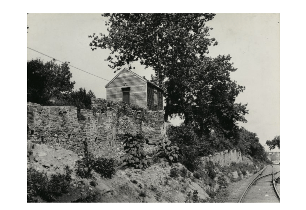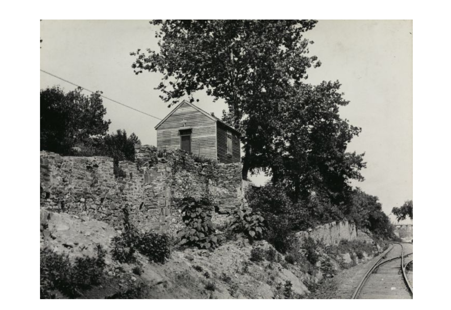 The photo, from the DCPL archives, is undated. The only information was written on the back of the photo: “unidentified church on towpath above Georgetown. B.Thompson, purchase. Rec’d: May 1, 1945.” This date listed is likely the date that B. Thompson purchased the photo, and not the date of the photo. But GM will see what he can do to put a rough date and location for it.
