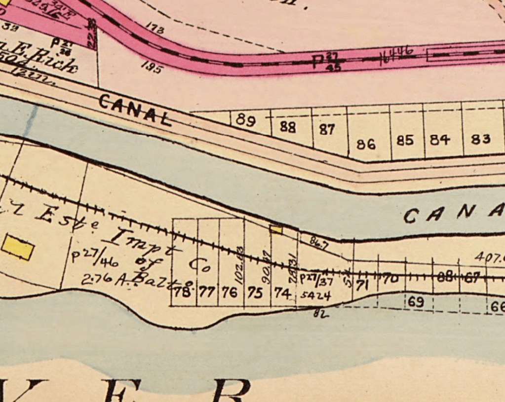 What the map does indicate is a small frame building between the tracks and the canal, which could be the church.