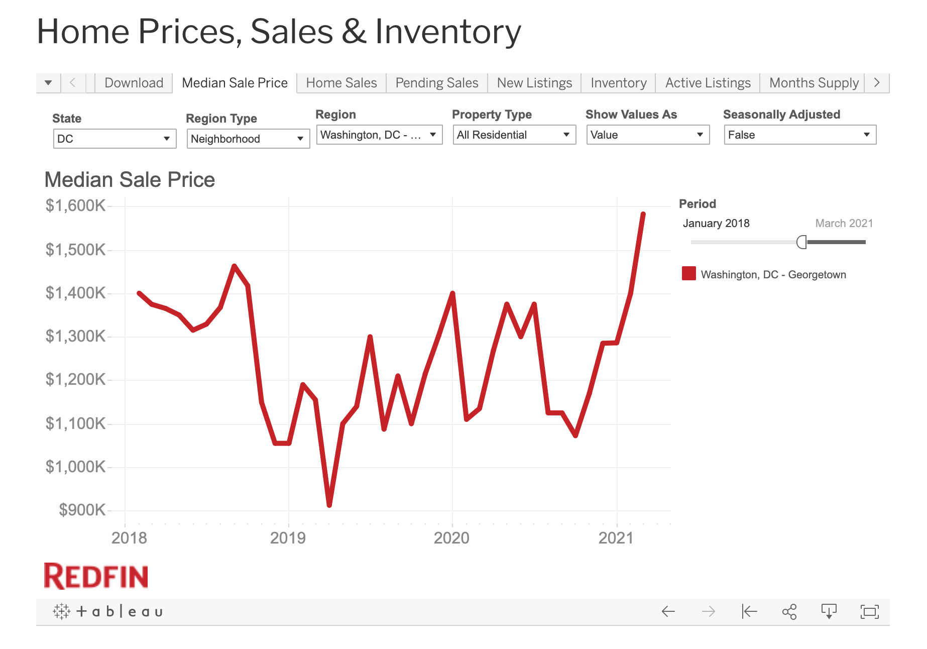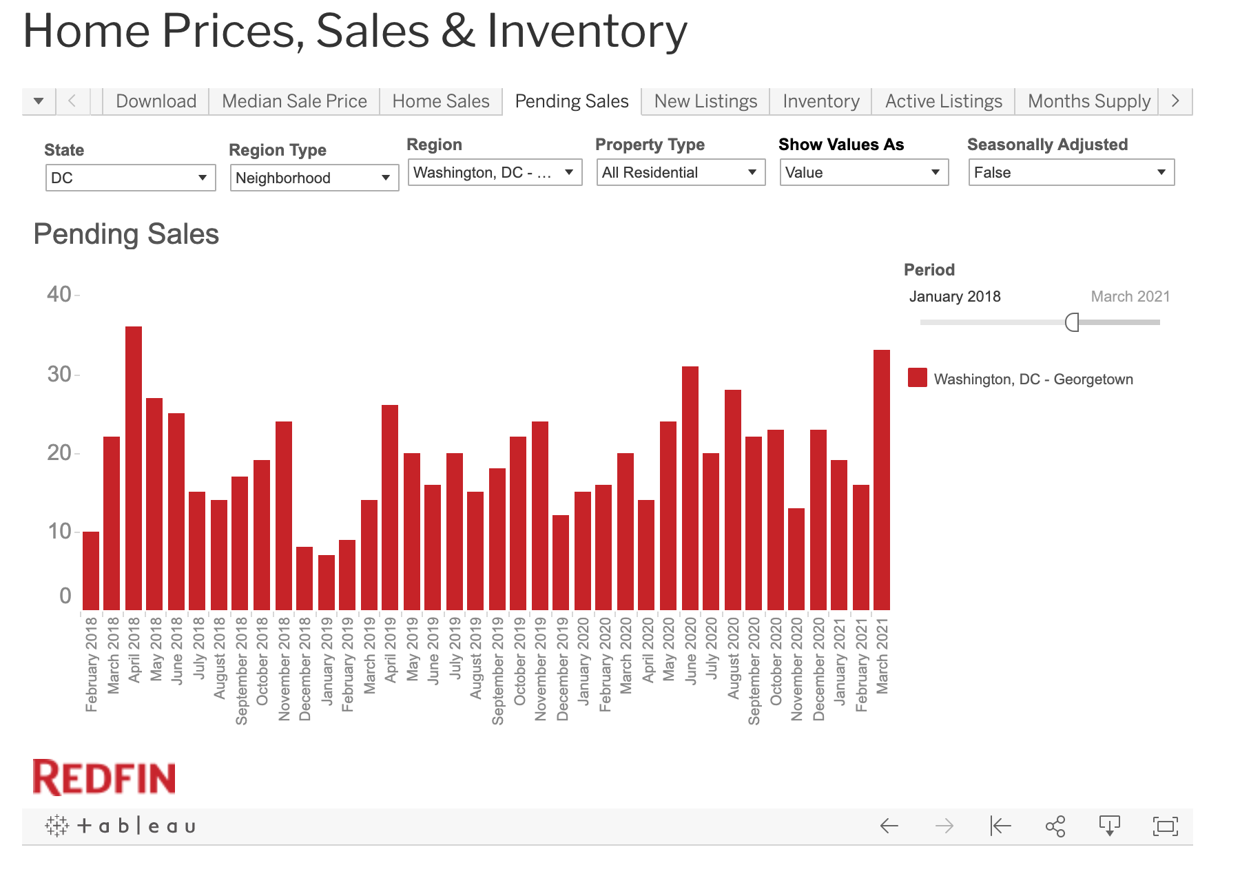 The second chart tracks the number of home sales in Georgetown. And despite there being so few homes for sale this spring, there were more homes going under contract this March than since April 2018. The buyers simply cleaned out the shelves.