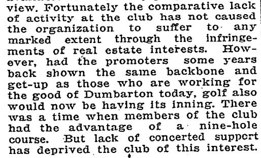 Although golf appears to have been a big part of the club’s existence in its early years, that went away. It appears that the real estate development of Burleith pushed it out, as described in 1915: