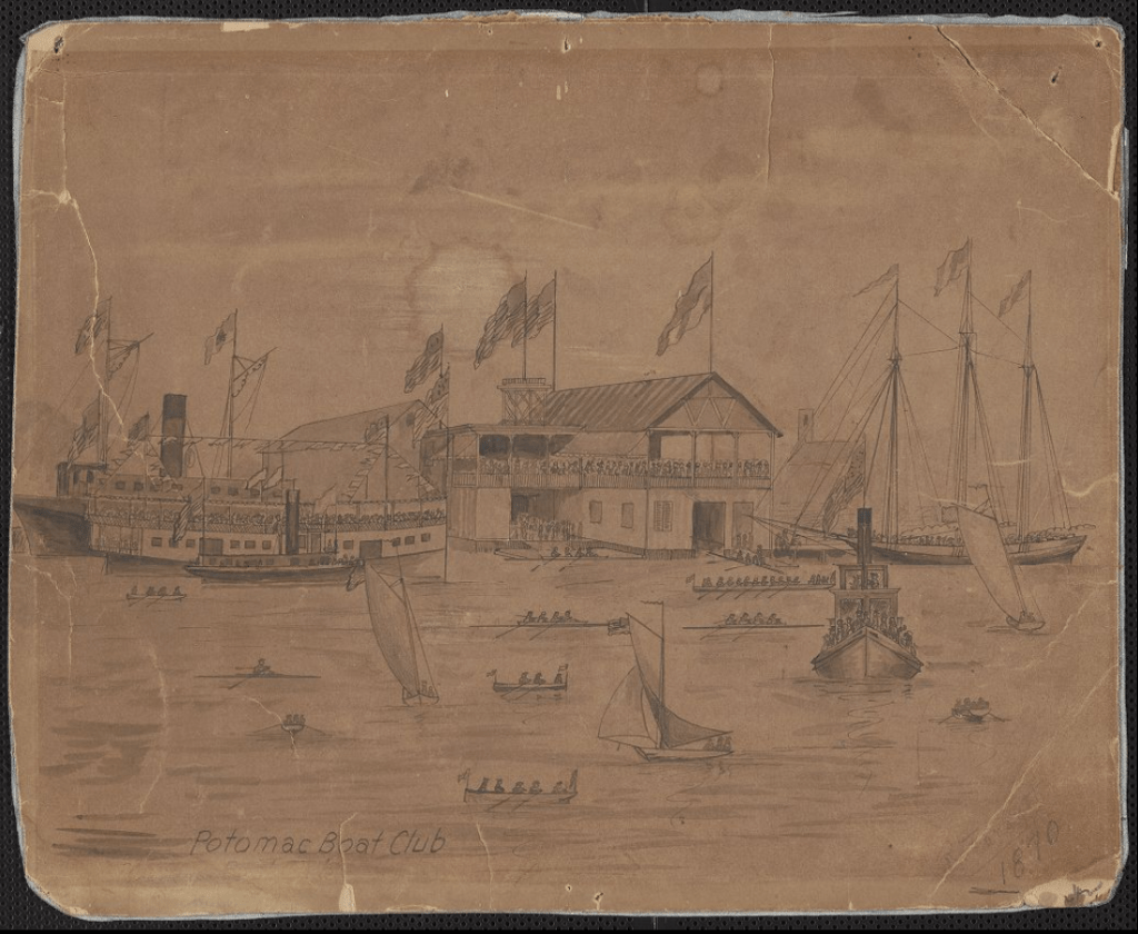 The Potomac Boat Club (or PBC) was founded as a rowing club in the middle of the 19th century. Some sources, including Wikipedia, peg the club’s founding to 1859. But according to the club’s own history, what was founded in 1859 was somewhat of a precursor organization known as the Potomac Barge Club. PBC itself was formed July 6, 1869.
