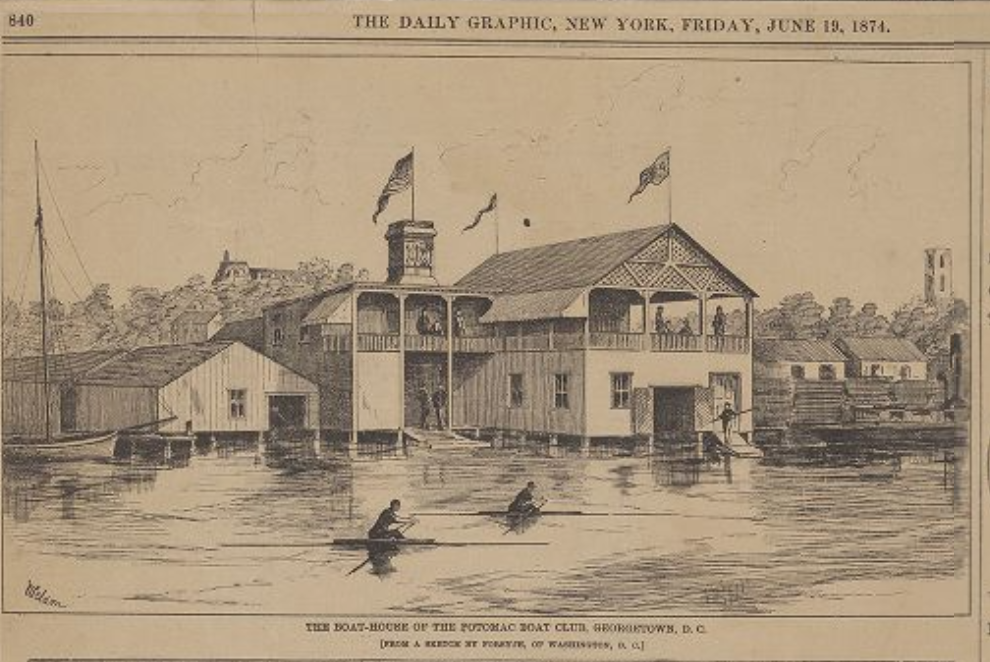 This week for Georgetown Time Machine, GM is exploring a long gone boathouse. The image above is from the Daily Graphic Newspaper out of New York from June 19, 1874. It is of the Potomac Boat Club.