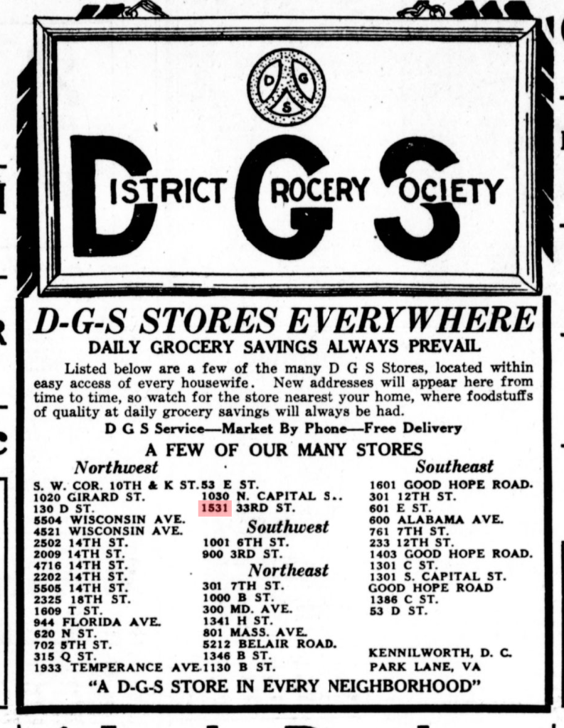 In the 1920s, the grocery store joined a syndicate of small grocery stores called District Grocery Society: