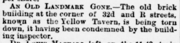 Additionally, Portrait of Old Georgetown, written in the 1930s by Grace Dunlop Ecker, does tie the Yellow Tavern to 1524 33rd St.