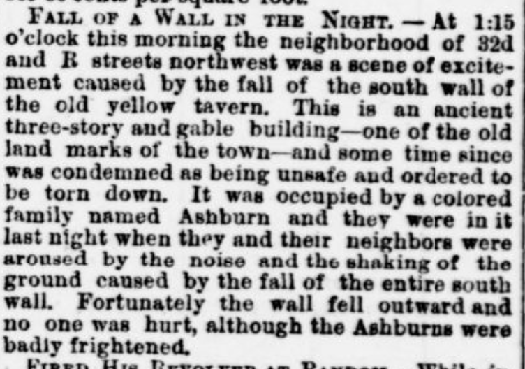 Even before the Yellow Tavern could be torn down, it started falling apart. Here’s the Evening Star on July 23rd, 1890: