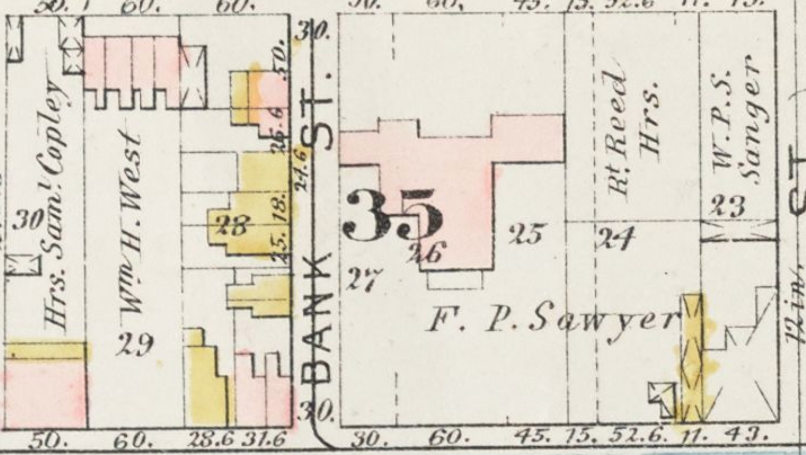 So is it Bank Street or Bank Alley? There’s not really a right answer. Going bank to the 19th century the names were used pretty interchangeably, although Bank St. seemed more popular and the name on all the maps GM found. To this day property deeds for the lots on the street use both names.