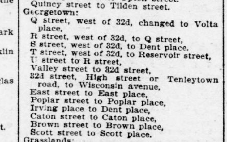 The road now known as Dent Place was carved out of a large plot of land known as Cooke Park. It ran from Q up to R St. west of 30th: