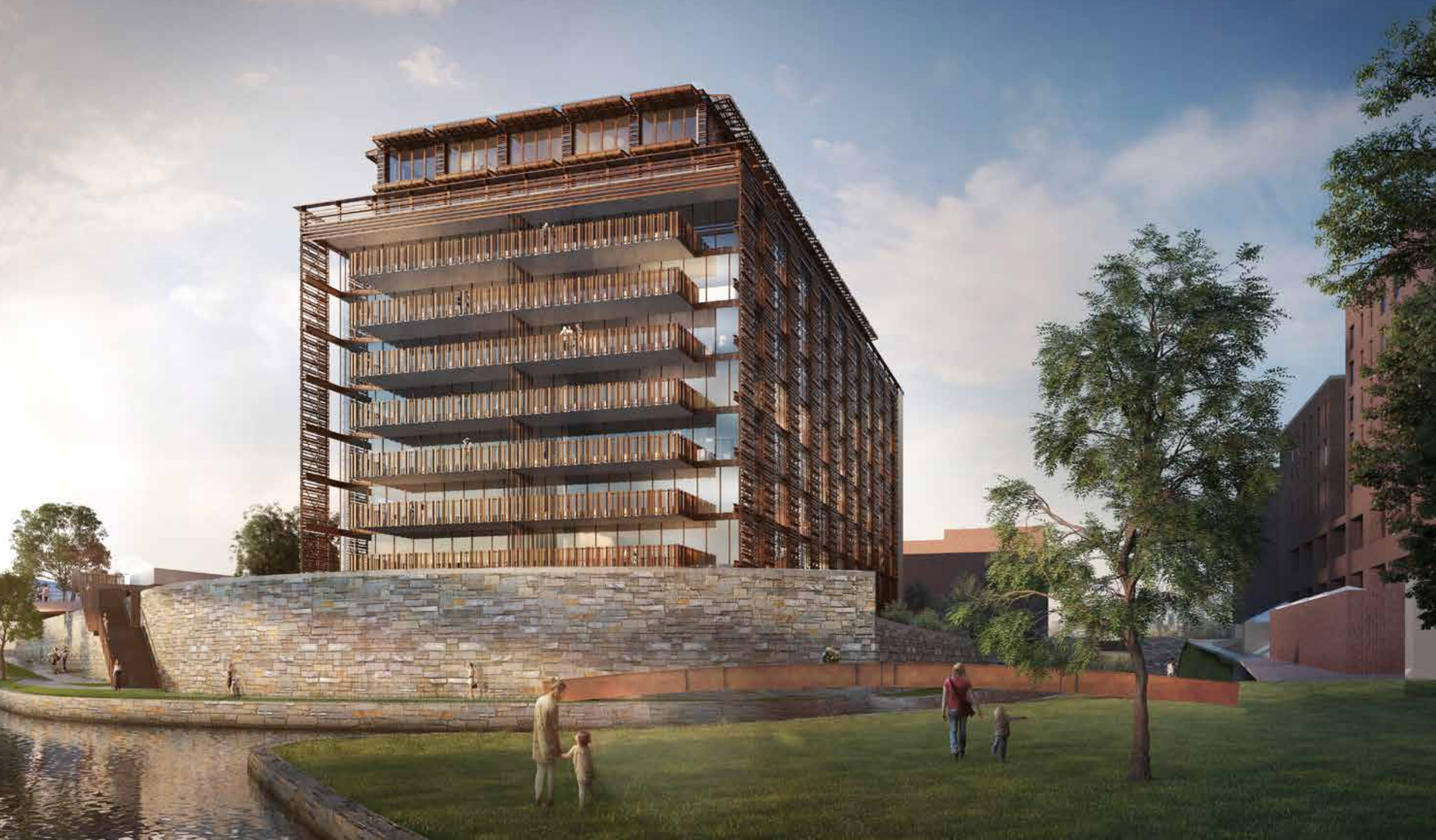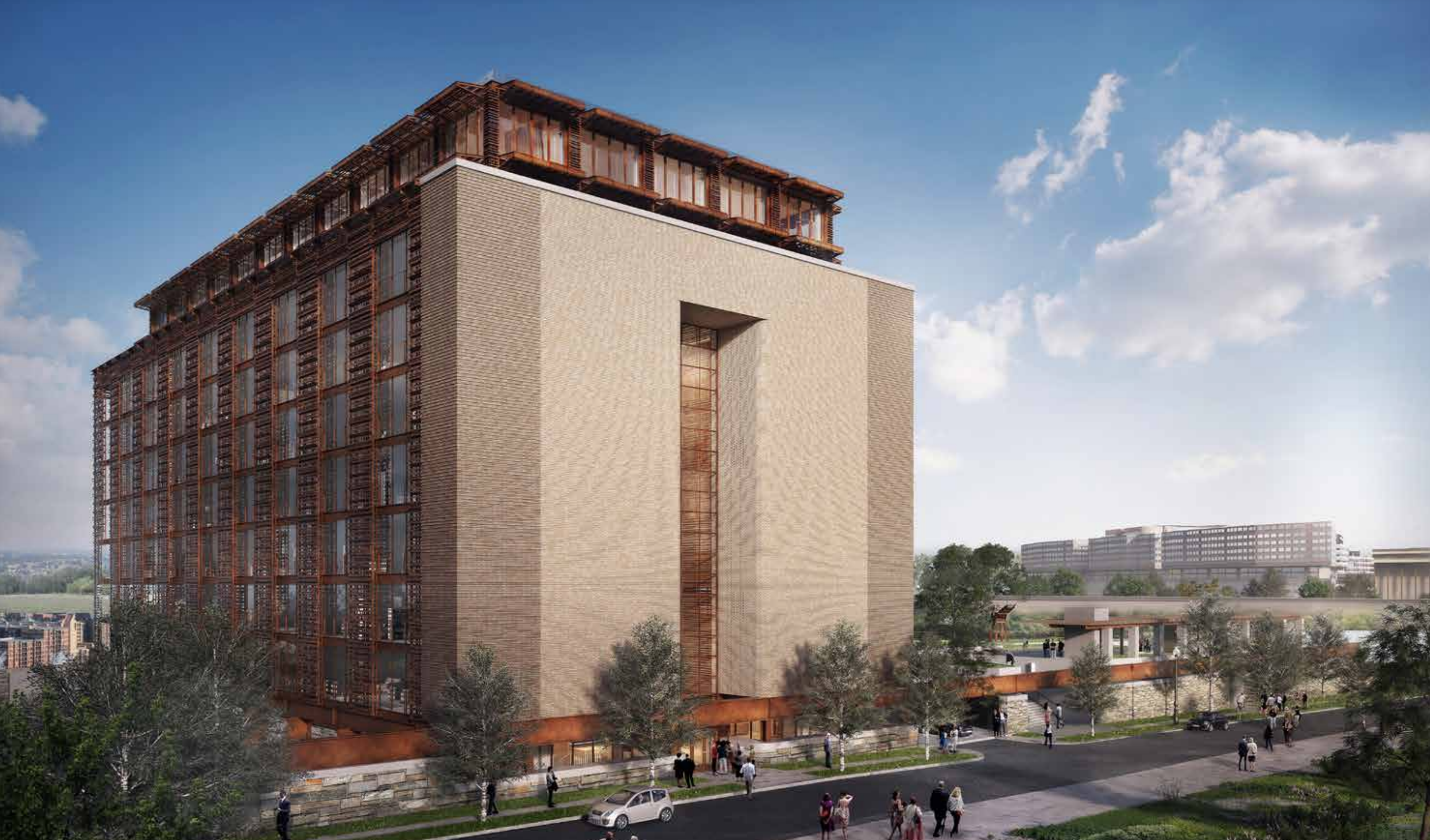 The east side of the building will be rather dramatic in its own right: