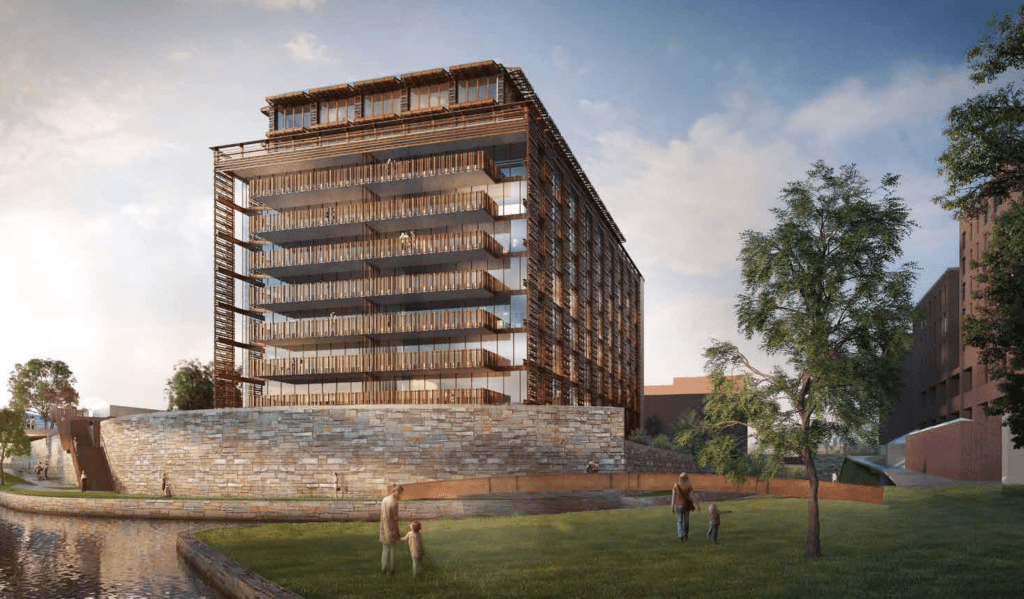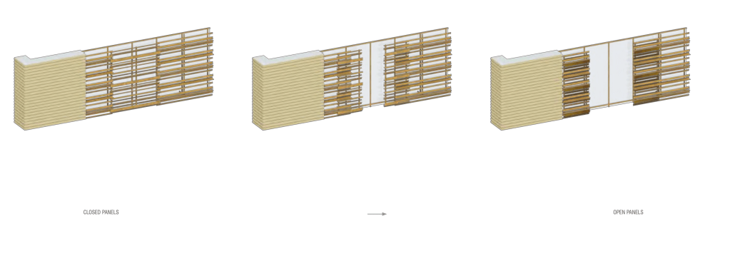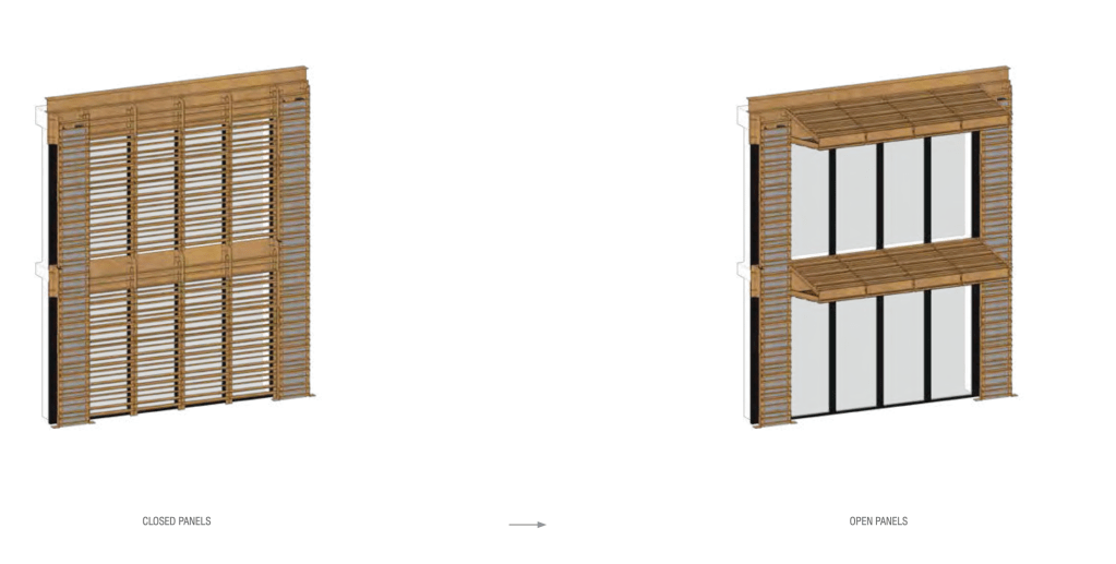 So the windows on the new building will echo the striking columns of glass that are on the current building. But the texture of the building will be quite different. The facade will be covered with a series of sliding shutters. Here is what they’ll look like: