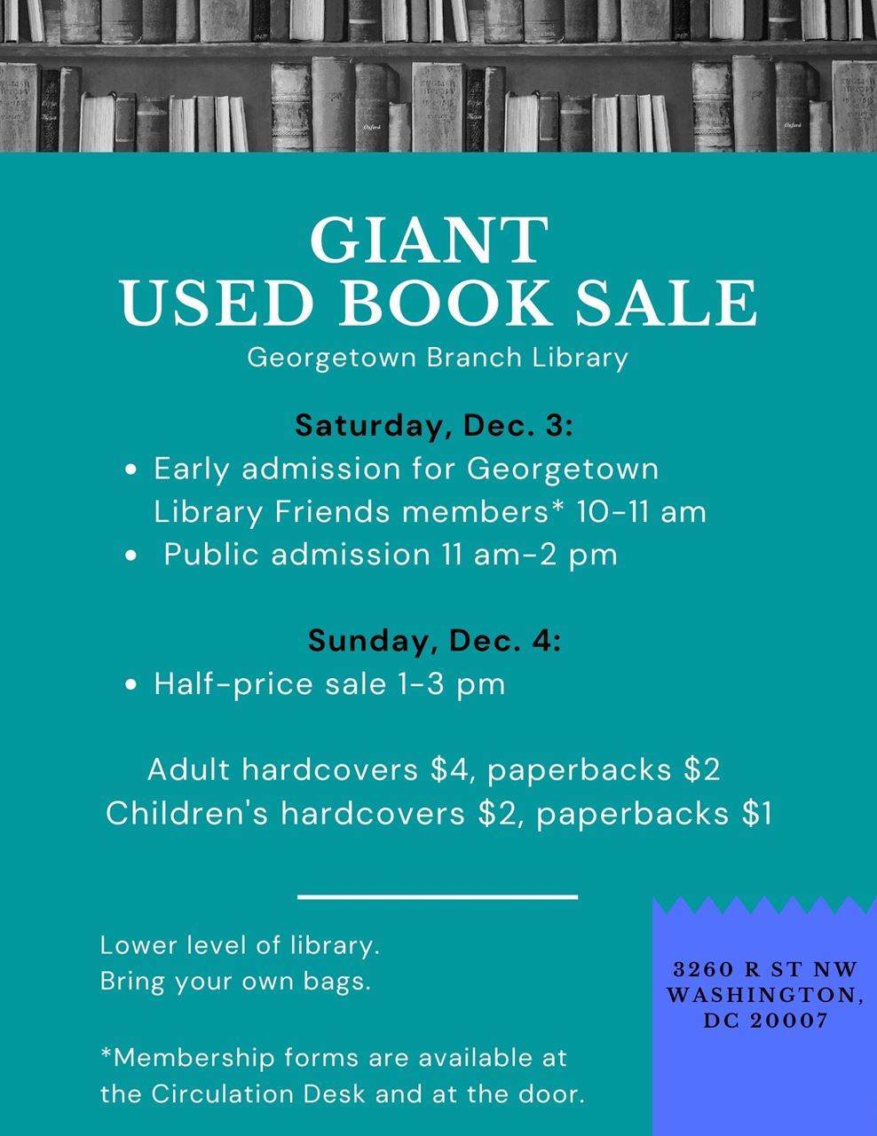 There will be a big used book sale this weekend at the Georgetown library on R st. Here are more details:
