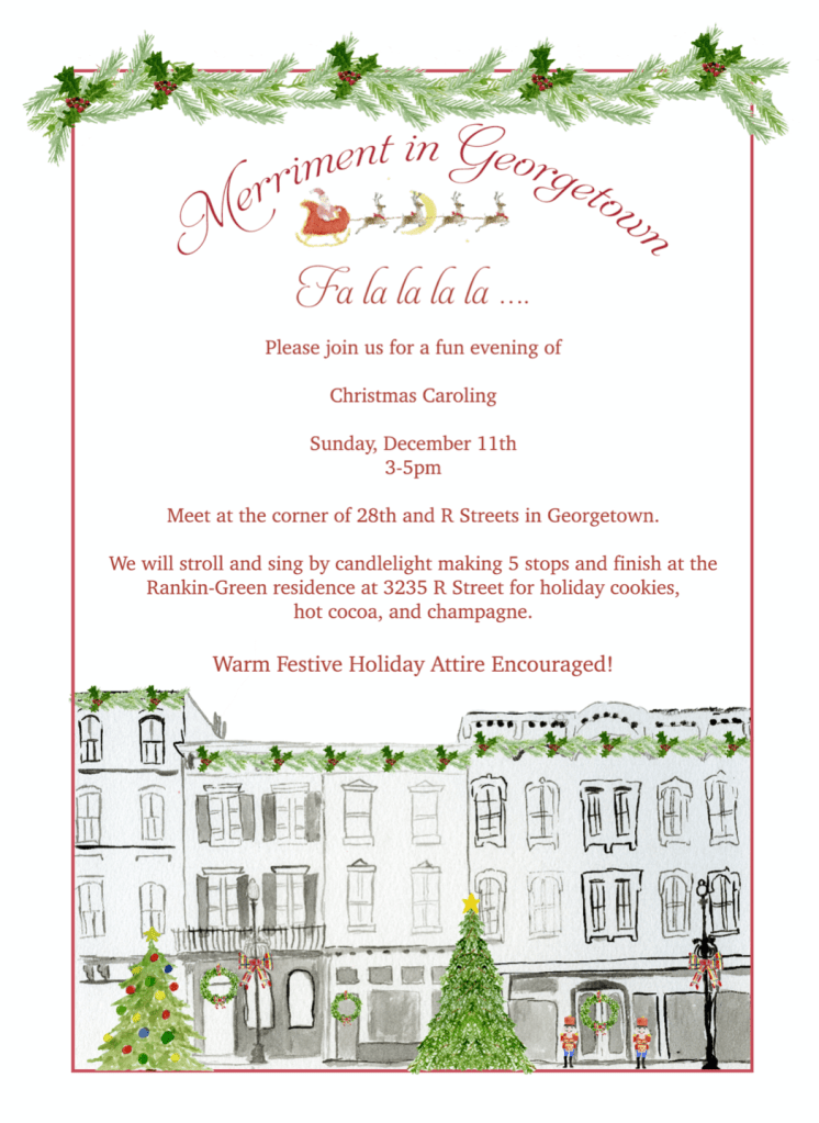 Elizabeth Miller is organizing a new event for the season called Merriment in Georgetown December 11th. It will be a festive caroling affair along R St.: