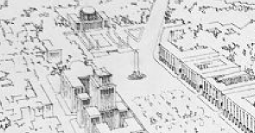 The two additional renderings show more of what the new streetscape would look like. And it’s 100% straight from the City Beautiful playbook. It would call for a grand new boulevard lined with dramatic new civic buildings. Here’s some closer looks: