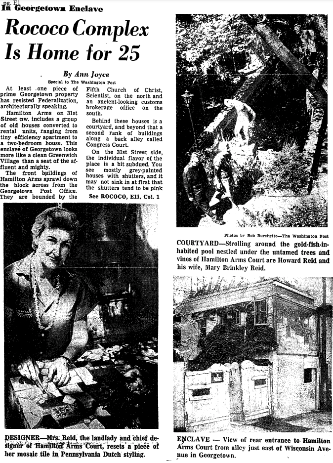At the ANC meeting this week, a plan was presented to renovate the group of properties between 1220 and 1234 31st St. For many years this complex has been called Hamilton Court and it was primarily used for offices. But in the middle part of the the 20th century, it was called the Hamilton Arms, and it was a truly wild and original place.
