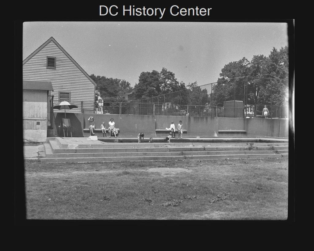 This week for Georgetown Time Machine, I’m dipping back into the wonderful DC Historical Society archives. In particular, I’ve found a snapshot from the Wymer collection, which is a priceless trove of photos taken around the city circa 1950 by Bill Wymer. This photo is of a pool and playground in Georgetown.