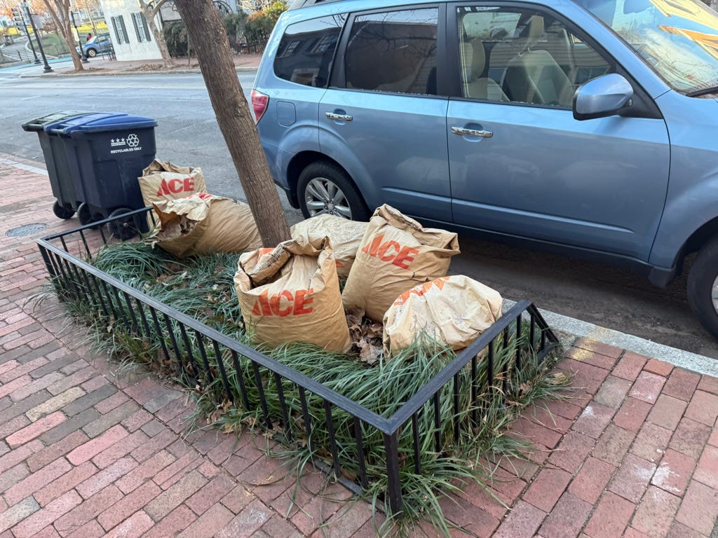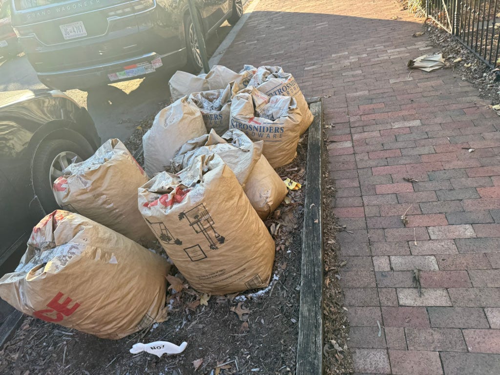 I walked the neighborhood taking photos of each collection of bags with the goal of submitting 311 requests to have them taken away. But the process is so cumbersome and the number of bags so high that I had to give up. The ANC is pushing DPW to come back and collect the bags en masse. But if there is a group of bags by your house, it would be helpful to file a 311 request to have them removed.