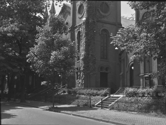 This week for Georgetown Time Machine, I’m checking out a photo of Georgetown Presbyterian Church from the DC Historical Society. It was taken around 1950 by John Wymer, who has an extensive collection of street shots from this period.