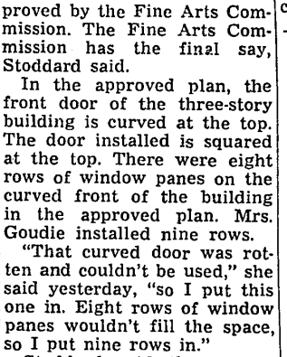 That new location, however, would turn out to be a big headache for Ms. Goudie. According to a Washington Post article from a couple months later, she got into some serious trouble with the preservationists: