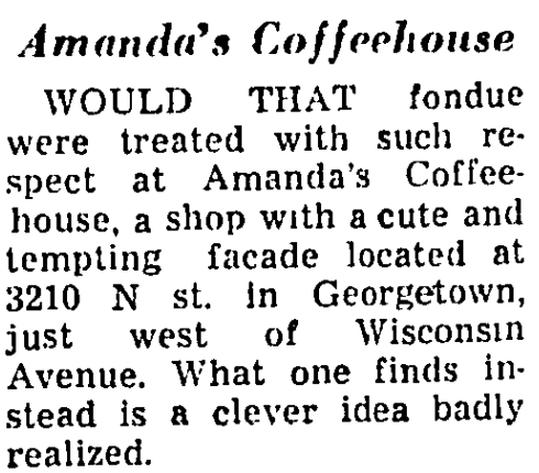Sadly for Ms. Goudie, this small victory did not save her from being savaged by the Post a few years later when her shop chased the fondue craze: