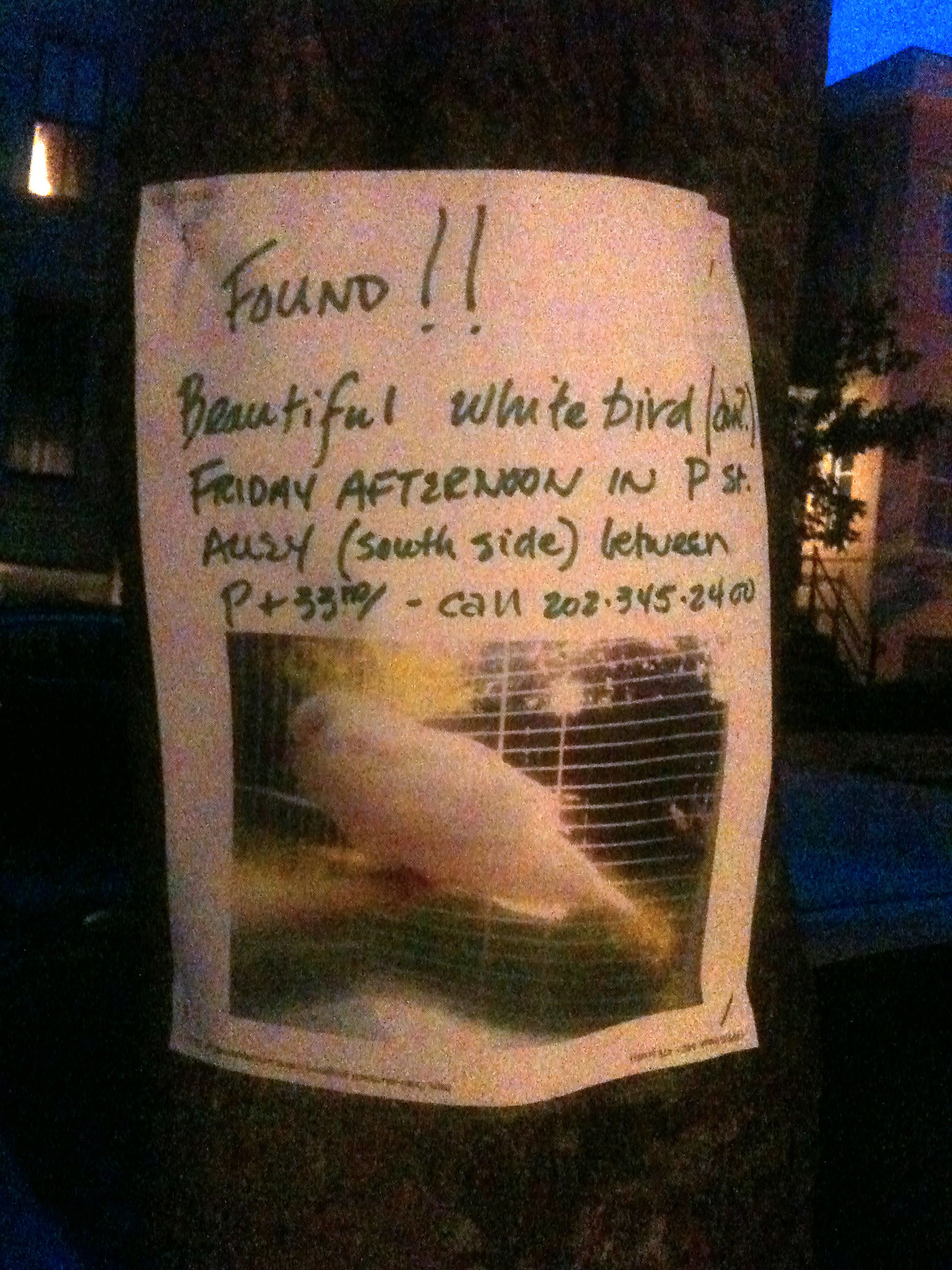 While Georgetown has plenty of green-space for an urban neighborhood, the fact is that we don’t have a particularly exotic stock of wild birds flying around, at least as far as GM can tell. Maybe a few hummingbirds here and there, or the occasional hawk flying by, but nothing to out of the ordinary.