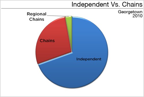 Georgetown is still overwhelmingly populated by non-chain stores.