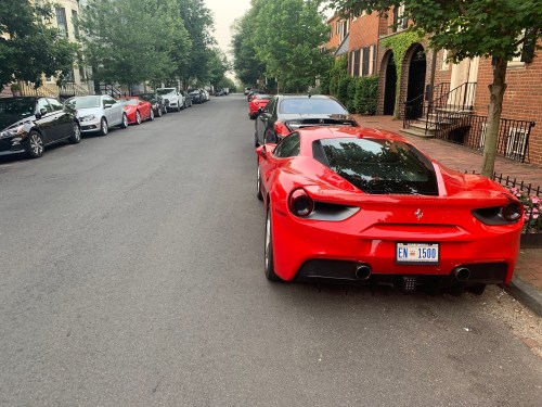 As GM mentioned last week, the East Village red Ferraris have multiplied. He went by the block yesterday and conveniently found them all on the same block.