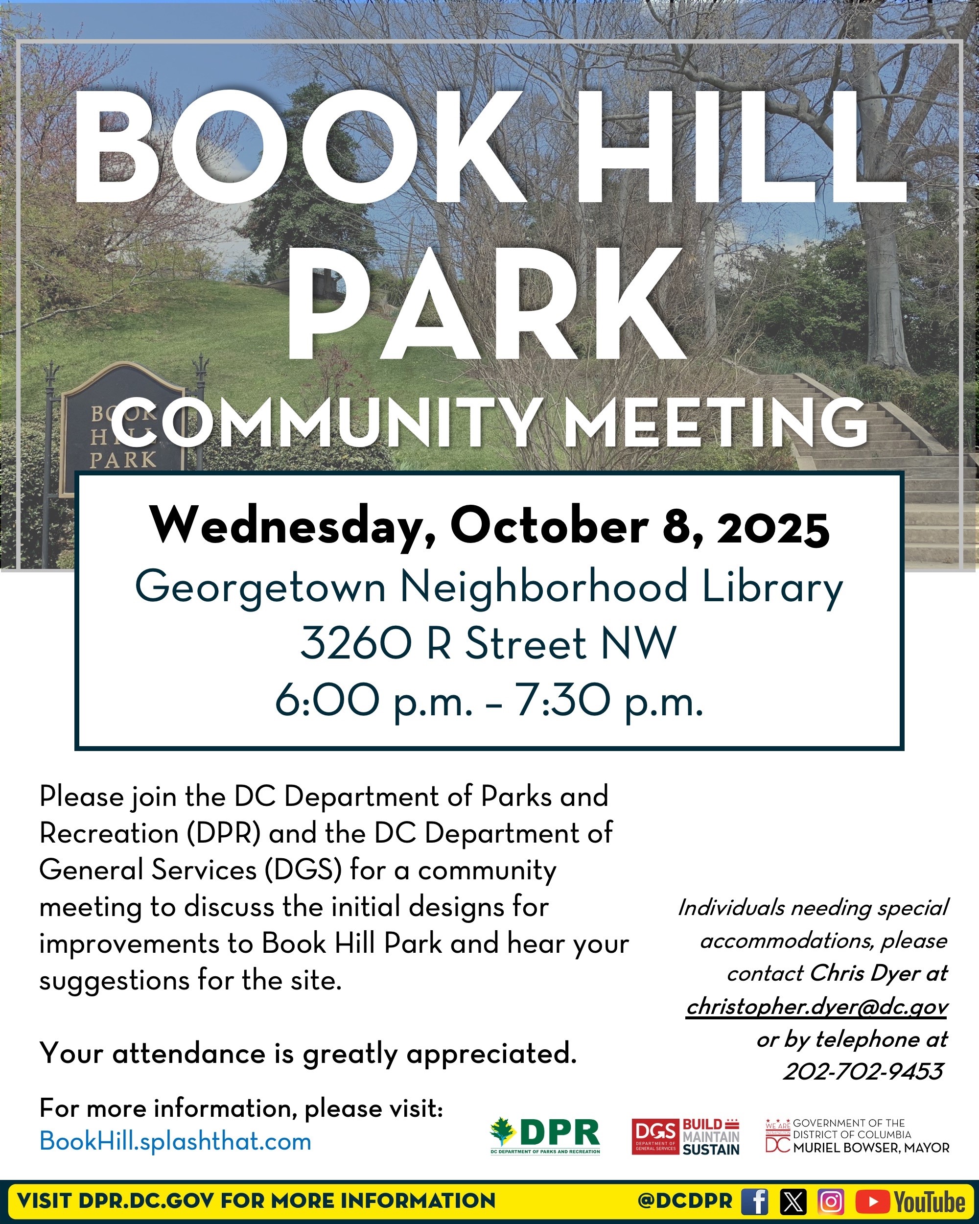The initial budget allocation for this project grouped potential improvements to Book Hill Park with improvements to the triangle park across the street (at 33rd and Wisconsin). But that park is administered by DDOT, not DPR, so whatever improvements it might receive will be handled through a different process, I believe.