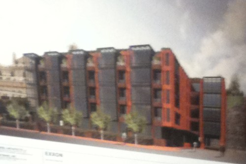 And that’s all great and definitely a step up from the generic look it had before. But doesn’t that black building paint give this tall building a rather looming feeling over the block. It has the potential to be a giant black hole in the middle of the streetscape.