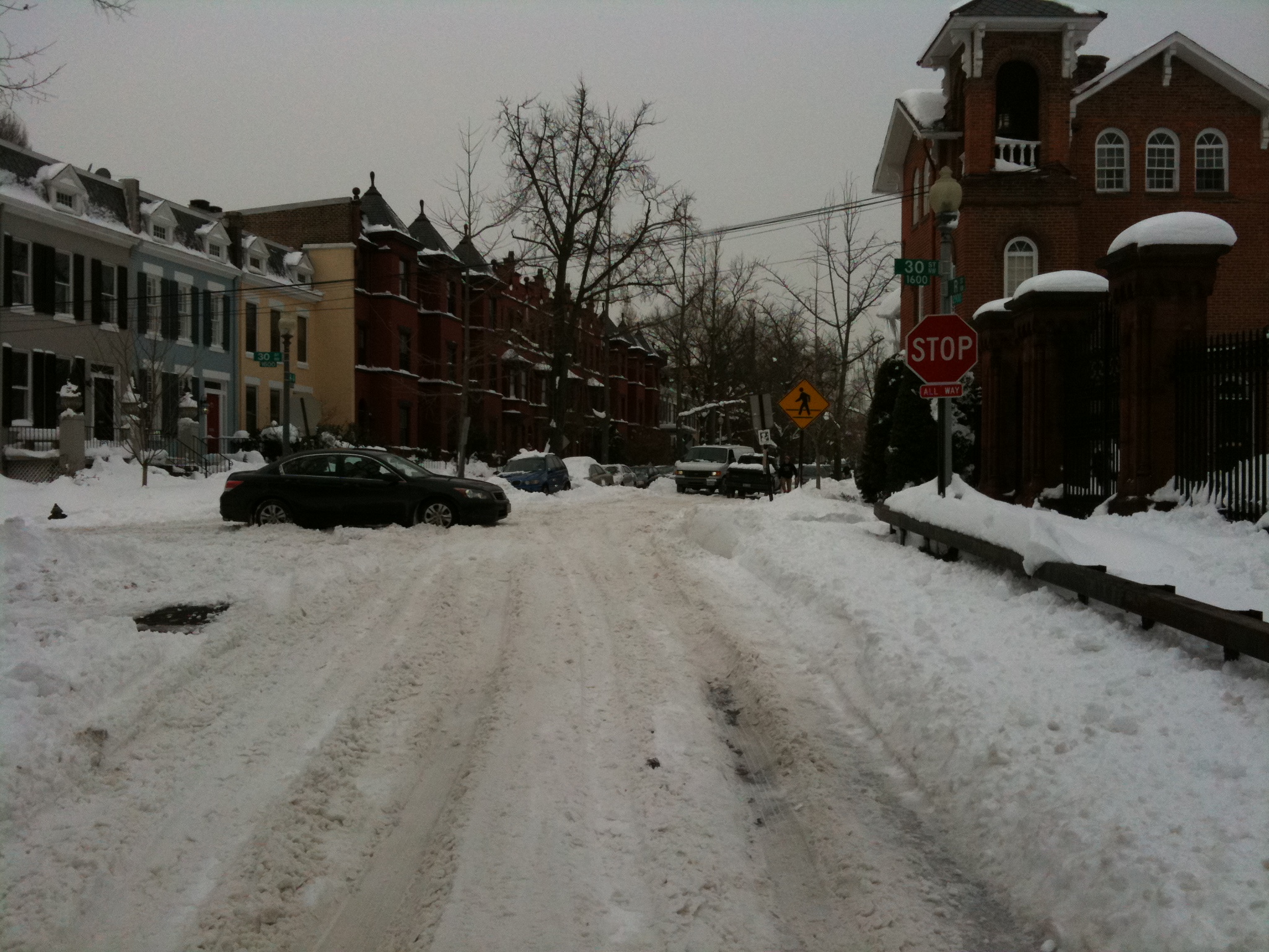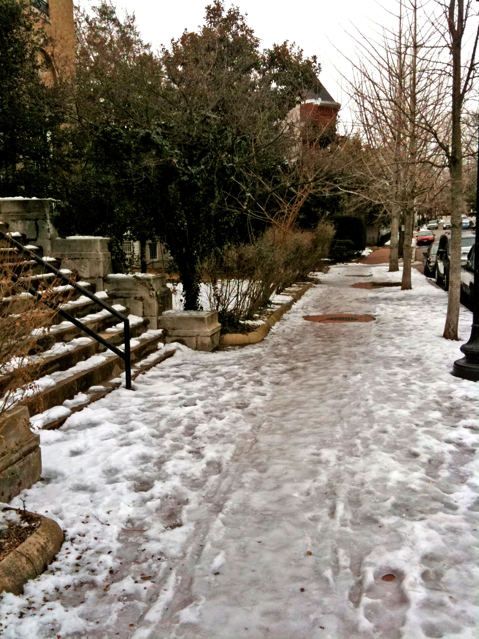 GM had a snow day yesterday and took the opportunity to walk around Georgetown and take stock of the sidewalks and roads. His findings: Most residents held up their end of the deal, but it only takes one bad apple on a street to cancel out the efforts of its neighbors. But residents were head and shoulders above businesses, who have left most of the sidewalks on M and Wisconsin almost untouched by shovel or salt.